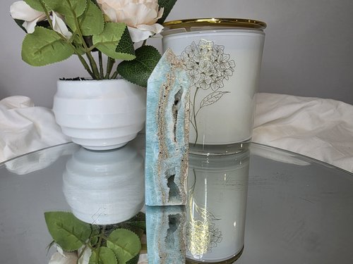 Radiating tranquil energy, this Hemimorphite tower is a powerful ally for emotional healing and open communication. With its soothing blue tones and subtle shimmer, Hemimorphite is known for promoting inner peace, compassion, and heartfelt expression.