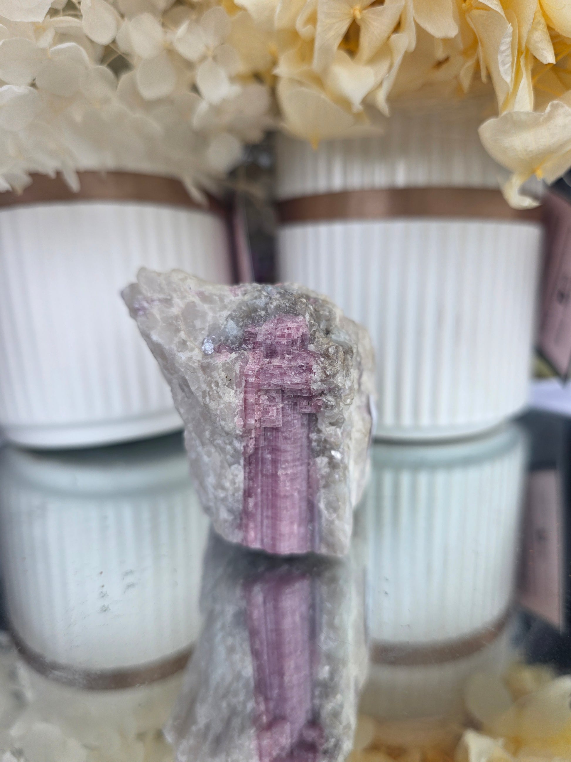 This vibrant pink tourmaline specimen radiates gentle energy and emotional healing. Known as the stone of love and compassion, it encourages self-confidence, emotional balance, and a positive outlook.