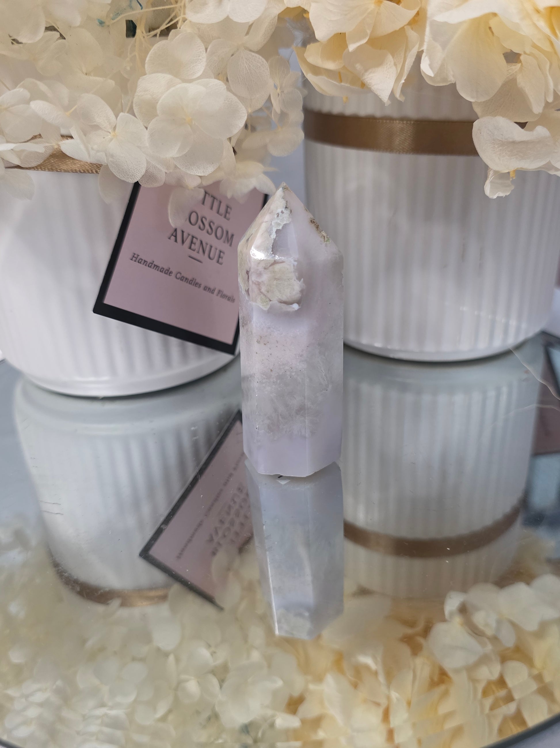 Blue Flower Agate carries the gentle, nurturing energy of flower agate with a calming blue hue. Known for encouraging growth, emotional balance, and clear communication, it helps ease stress while inspiring confidence and inner peace.