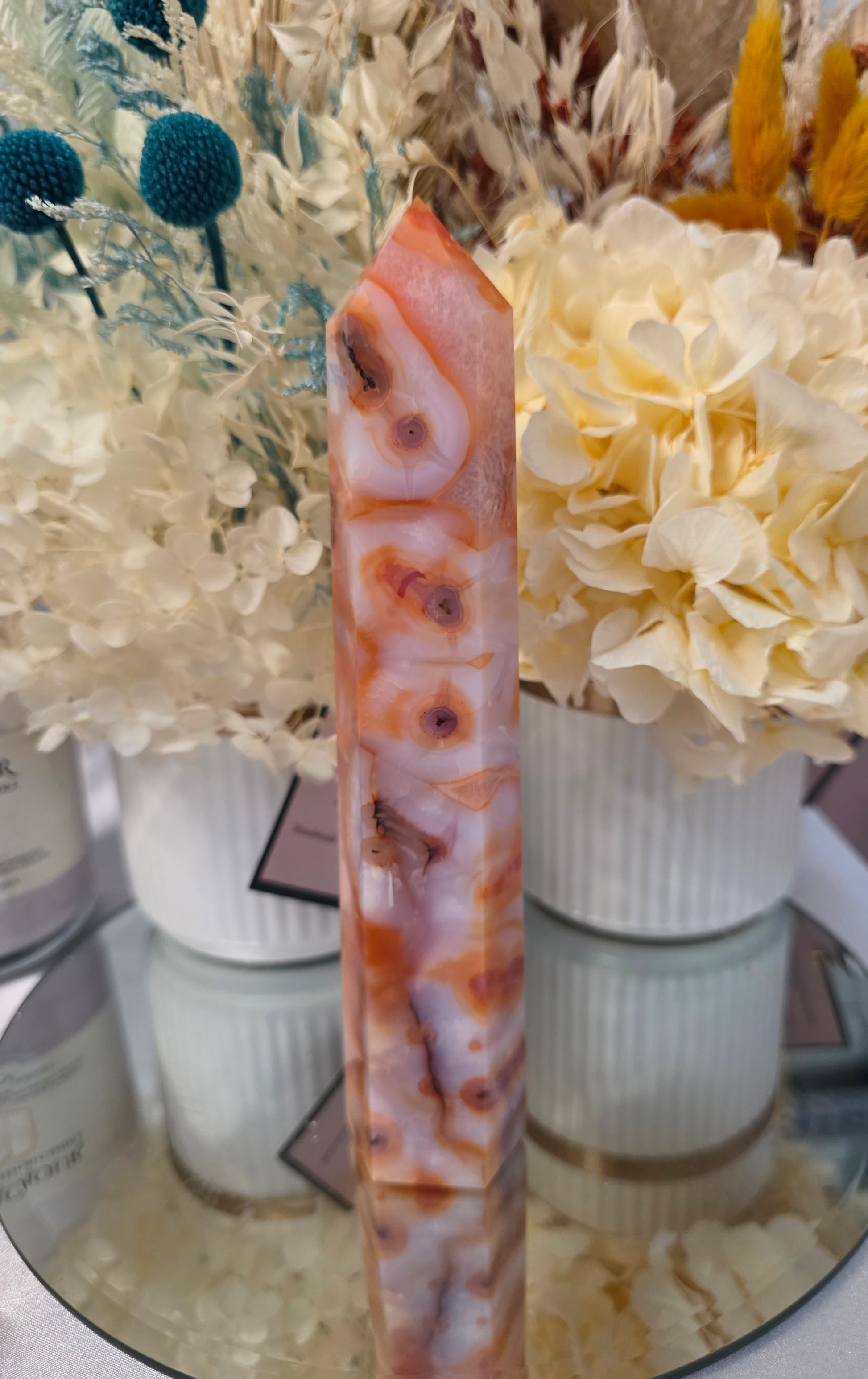 Carnelian is a stone of vitality, courage, and creativity. This fiery tower boosts confidence, motivation, and passion while grounding your energy. Perfect for inspiring action and bringing warmth and strength to your space.